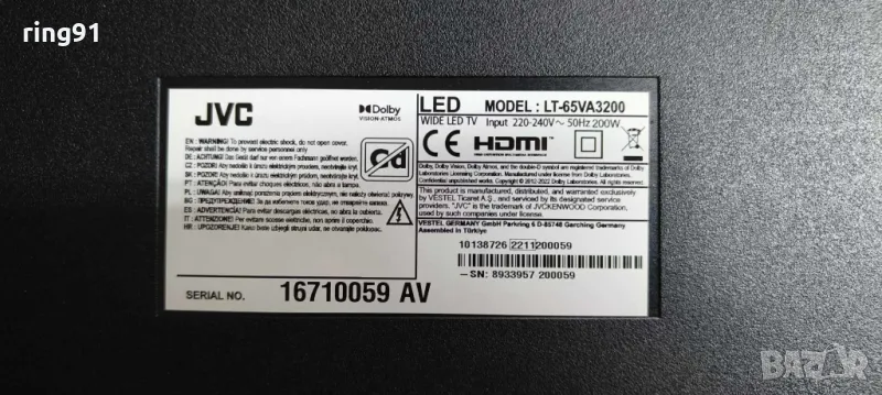 T-Con - 47_6021332 HV650QUB_F70_V00 TV JVC LT-65VA3200 → Обява 47225132