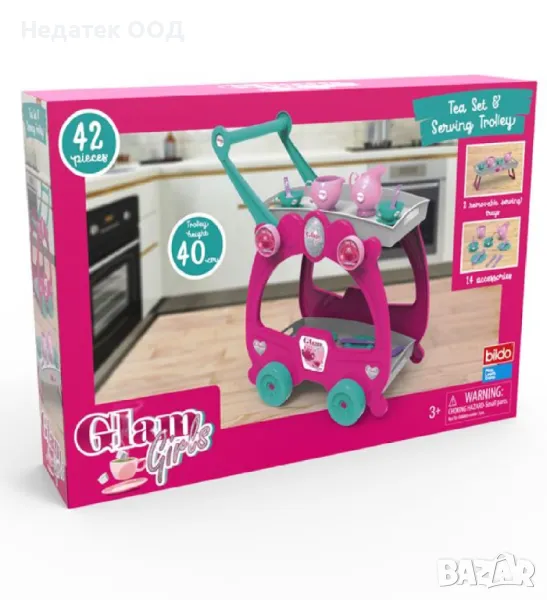 Маса за играчки в цвят фуксия с вермант детайли и подвижна табла. Разполага с много аксесоари за сервиране на чай или кафе. За безкрайни часове игра.Размери на опаковката: 57x12x37.5см