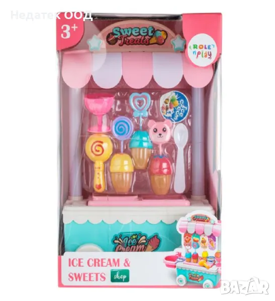 Игра за момичета, магазин за сладолед с вкусни реалистични цветни кексчета, жълта лъжица, розова купа за сладолед, сладолед и десертна лъжица. Сервирайте приятелите си и се поглезете с невероятни лакомства.