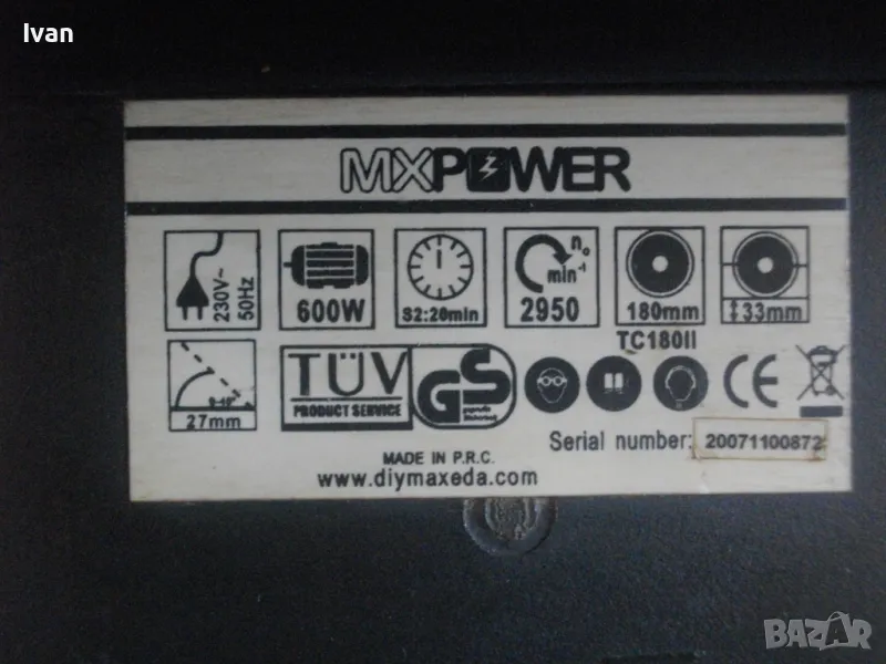 Цена на сива малка ел. машина за мокро и сухо рязане на плочки всякакви до 33 мм дебелина - MX Power - ф180 мм диск - 600 вата - производство 2007 г. P.R.C. - без вана за вода - отлично състояние -155 евро-