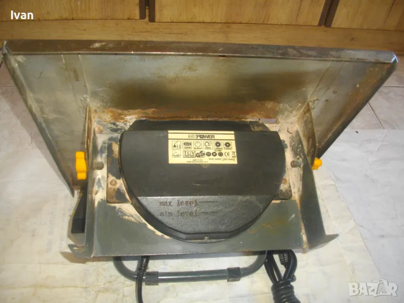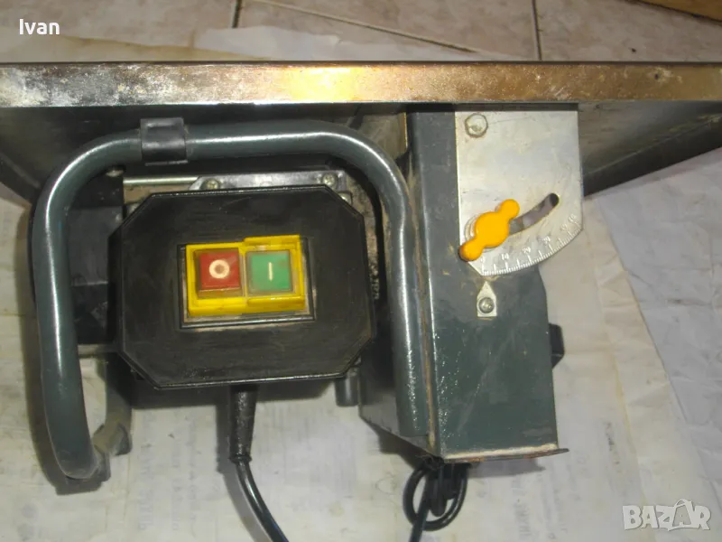 гнайс. Машината е с много запазен външен вид и отлично технв.състояние. Работи и реже много добре. Мощност - 600 вата, обороти - 2 950 /мин. Време на работа с 1 пуск - 20 мин. Реже плочи с дебелина упомената до 33 мм. Марка и модел - MXPOWER. Производство - 2007 г- P.R.C.За дискове диамантини празмер ф 180 мм. машината е с поставен оригинален почти нов диск 180 мм - диамантина, с предпазен кожух над него и упоменато ниво за вода.Липсва пластмасовата ваничка за вода ,но може да се ползва всякъкв друг плитък съд. Наклон за ъглово рязане - 45-90 градуса. Плот - метален размери - 385х395мм, разграфен изцяло до 22 см. Корпус - изцяло масивен, метален - стомана. Пускови бутони - 2, с антипрахово, силиконово покритие.