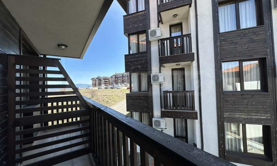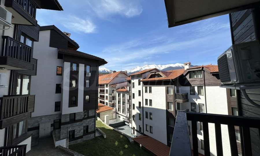 Просторен и светъл двустаен апартамент в хотелски комплекс, разположен в подножието на Пирин планина, само на няколко минути от кабинковия лифт и ски пистите на Банско.