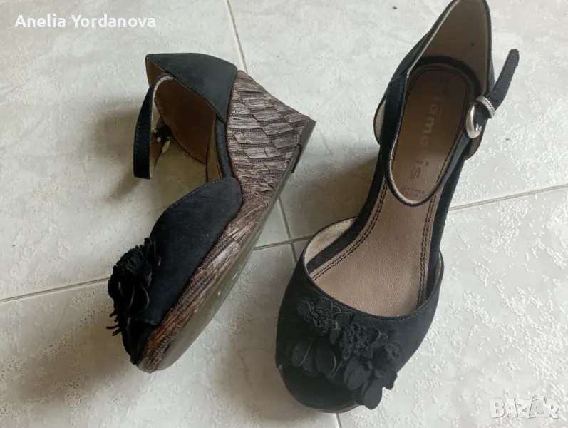1. Tamaris - нови, естествен велур на платформа 7 см. Стелка 23 см. Черни - ПРОДАДЕНИ.