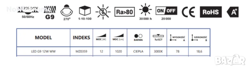 LED крушка MILIO G9 12W 1020 lm Топло бяло 3000К, снимка 1 - Лед осветление - 47226785 LED крушка MILIO G9 12W 1020 lm Топло бяло 3000К, снимка 2 - Лед осветление - 47226785 LED крушка MILIO G9 12W 1020 lm Топло бяло 3000К, снимка 3 - Лед осветление - 47226785 LED крушка MILIO G9 12W 1020 lm Топло бяло 3000К, снимка 4 - Лед осветление - 47226785 1/4