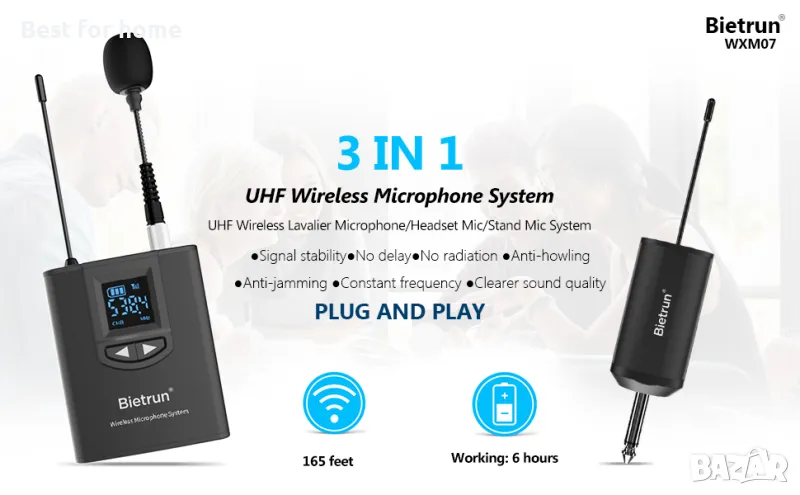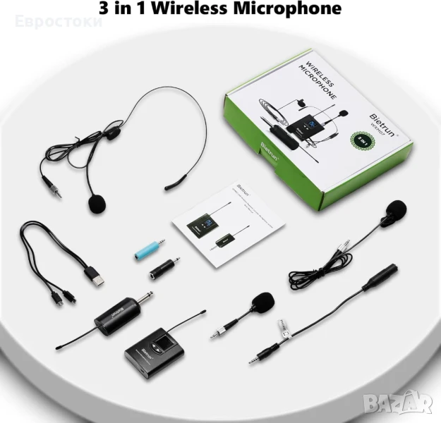 Bietrun UHF безжична микрофонна система 3 в 1