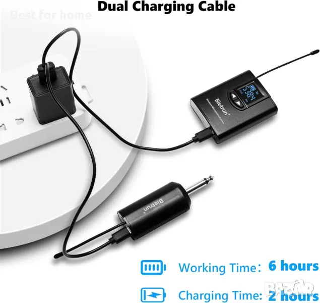 【6 часа работно време】Предавателят и приемникът са с вградени 650 mAh акумулаторни литиево-йонни батерии, които могат да предложат около 6 часа работно време. Тази микрофонна система е идеална за живи изпълнения като проповядване в църква, сватби, преподаване, презентации, училищни пиеси, обучение, публични речи, интервюта или видео и аудиозаписи.
