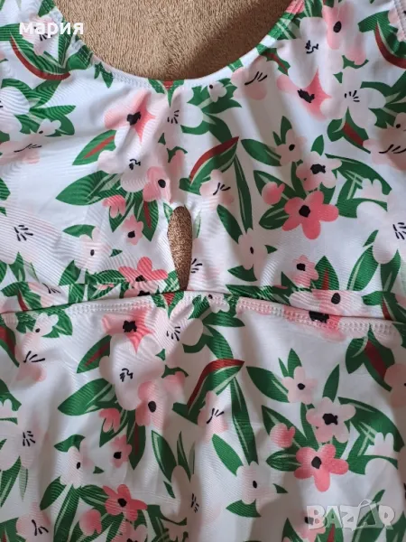 Нов цял бански в красив принт.Елегантен модел.За по-едра дама.Размер ХЛ.Без етикет.