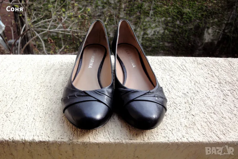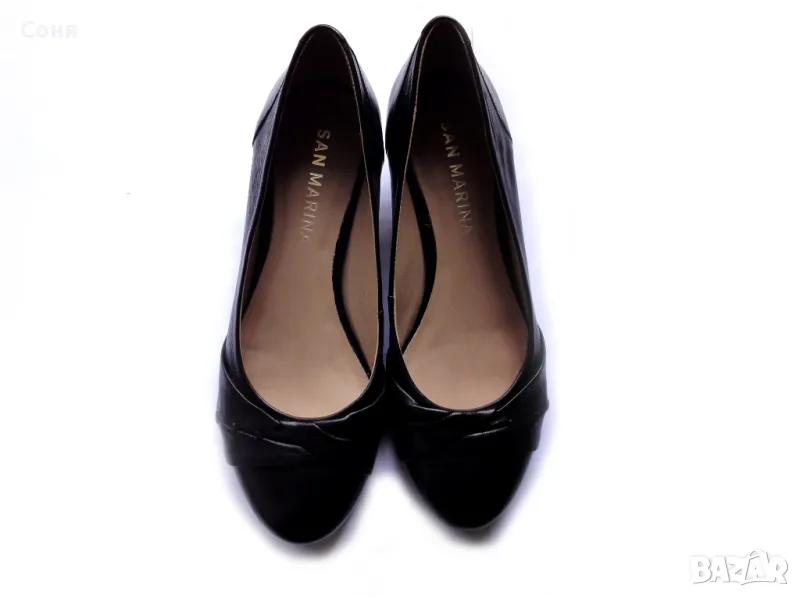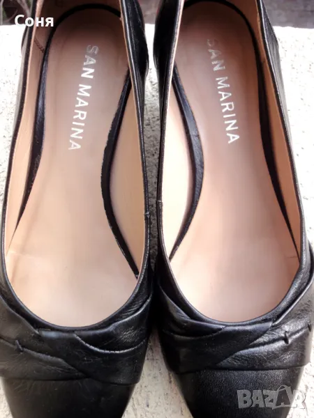 Обувки на френската марка San Marina. Изцяло изработени от естествена кожа (лицева и вътрешна част). Номер 37. Ток 3см. Обувани броени пъти. Без забележки. Отлично състояние.