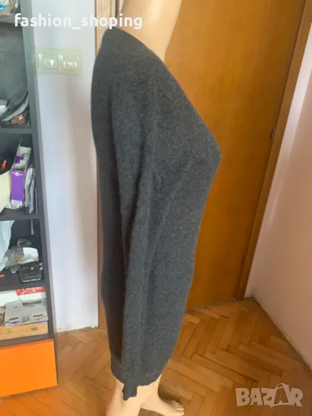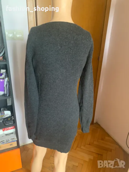 Дълъг пуловер тип рокля на бранда Ralph Lauren с V- oбразно деколте. Цветът му е черно към тъмносиво .Плетиво от най-качестените зимни материи- кашмир и вълна. Пуловерът е с дълбоко деколте, което позволява да се носи с риза отдолу за придаване на по-легантне вид, а по смелите дами могат да го носят и без допълнителна дреха.Надолу може да се носи със скини дънки или с клин, както и като рокля
