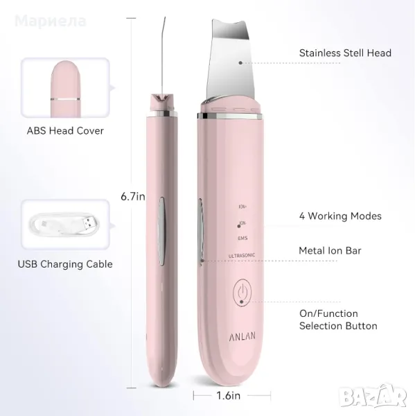 Кавитационният пилинг ANLAN ще ви помогне да постигнете желаните резултати! Предлага до 4 режима на работа - изход на положителни йони, вход на отрицателни йони, EMS микротоков масаж и ултразвукова вибрация. С негова помощ безпроблемно ще намалите появата на бръчки, ще изгладите кожата си и ще я направите изключително стегната. Уредът ще ви помогне и в борбата с акнето и черните точки, ще придаде на тена ви здрав, красив блясък и ще подобри кръвообращението.