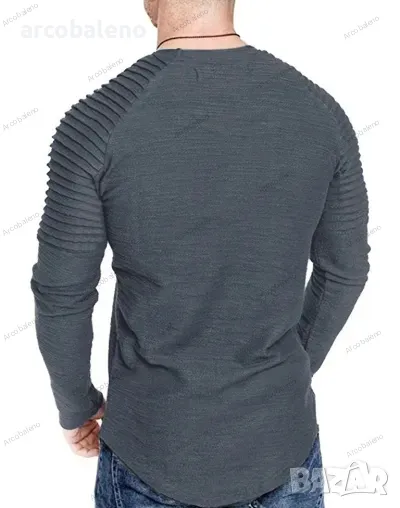 Ежедневна мъжка тениска с рипсени ръкави, 4цвята