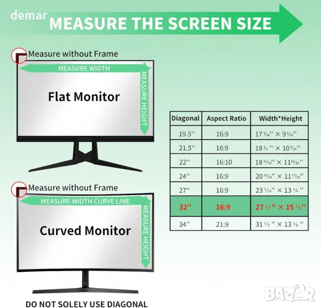 DEJIMAX 32-инчов екранен филтър за поверителност за 16:9 монитори