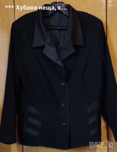 Материята е много мека и леко еластична. Кройката е интересна. Стои красиво, платът е с две лица, като апликациите са от гладкото лице на плата, което придава шик на сакото.