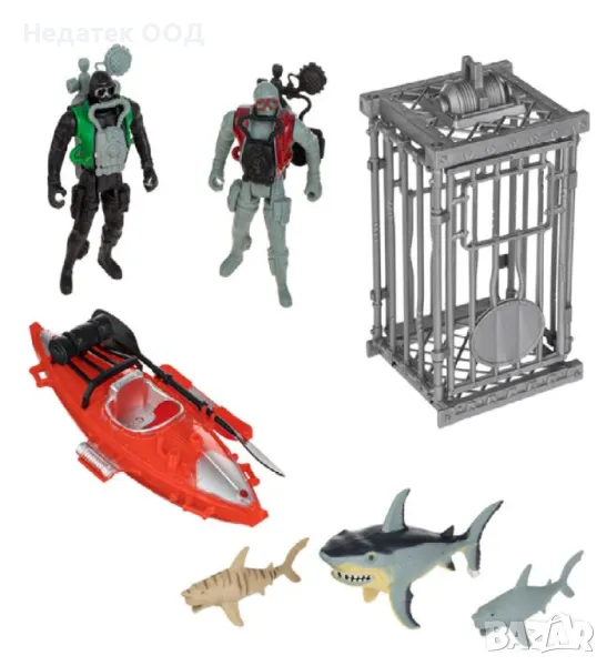 Боен комплект, водолази, акули, клетка, пояс, 7 бр. → Обява 47229524