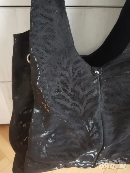 нова дамска чанта от естествена кожа тип торба щампована кожа със сребристи мотиви