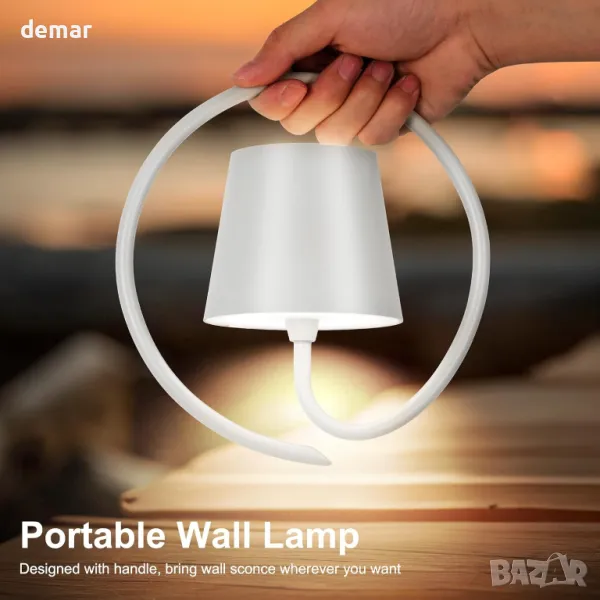 аплик за стена разполага с батерия от 5200 mAh с тип C зареждане, което прави инсталирането лесно без необходимост от окабеляване. Неговият преносим дизайн позволява гъвкава употреба в различни настройки, перфектен по време на прекъсване на захранването. Светлината предлага три регулируеми цветови температури (3000K-6000K) и затъмняване от 5% до 100%, персонализирано за различни среди. С IP54 водоустойчив рейтинг, той е подходящ както за вътрешна, така и за външна употреба. Разпределението на светлината от 360° предпазва очите с LED осветление без трептене и отблясъци, което гарантира безопасност и комфорт. Идеален за всекидневни, спални, бани и много други, това е универсален, обмислен подарък.