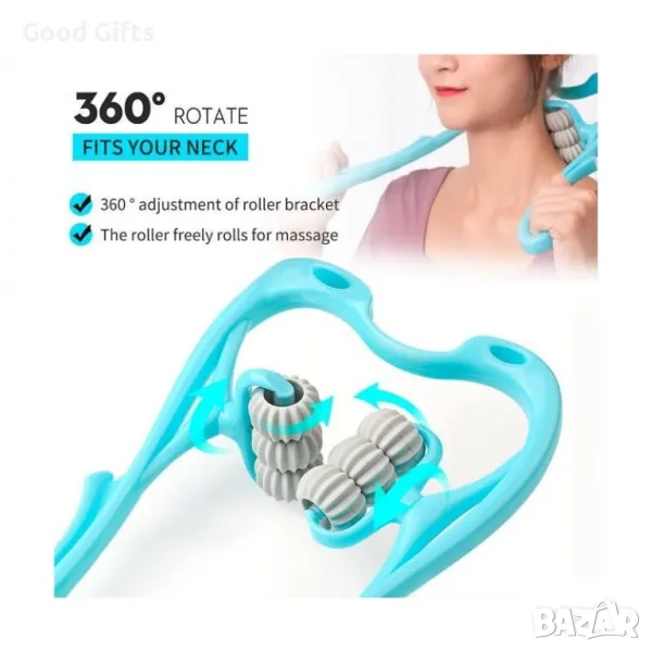 Този ръчен масажор за врат и цяло тяло подобрява кръвообращението и помага при болки и шипове, скованост във врата, гърба, краката и прасците, облекчава напрежението, стреса и умората.