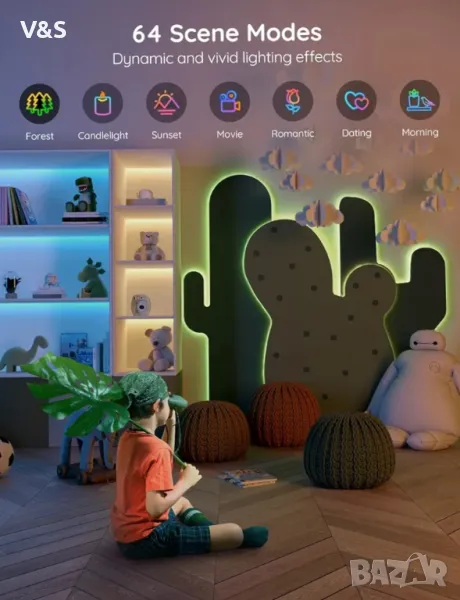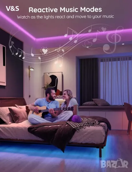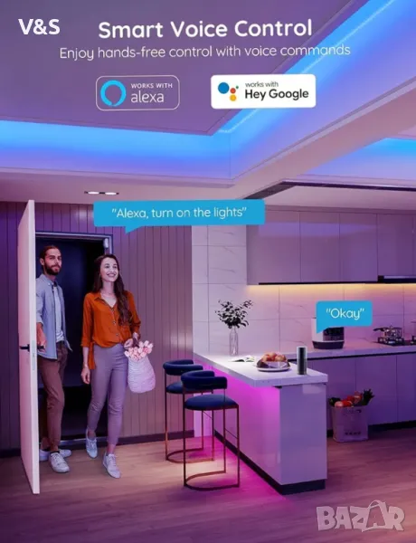 Удобен гласов контрол: Govee LED Strip Lights може да работи с Alexa и Google Assistant, вие използвате само простите гласови команди за управление на LED светлините, като например включване и изключване на LED светлините, регулиране на яркостта и промяна на цвета.