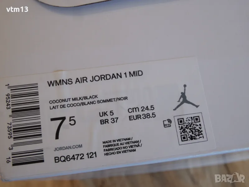 Нови! Nike Air Jordan 1 Mid Coconut Milk - 38,5 номер Оригинални! → Обява 47230600