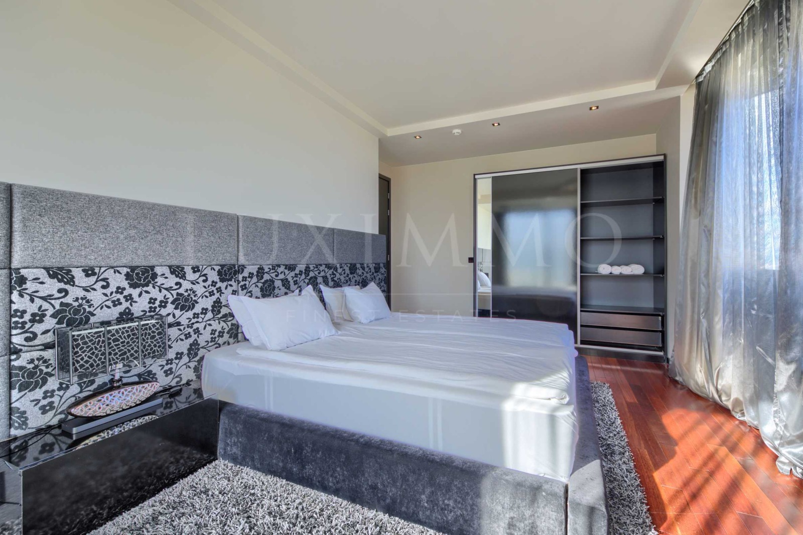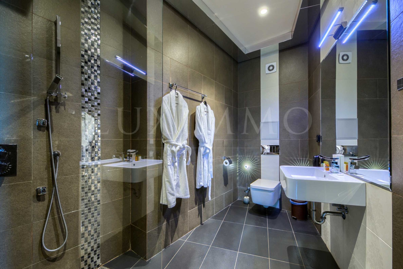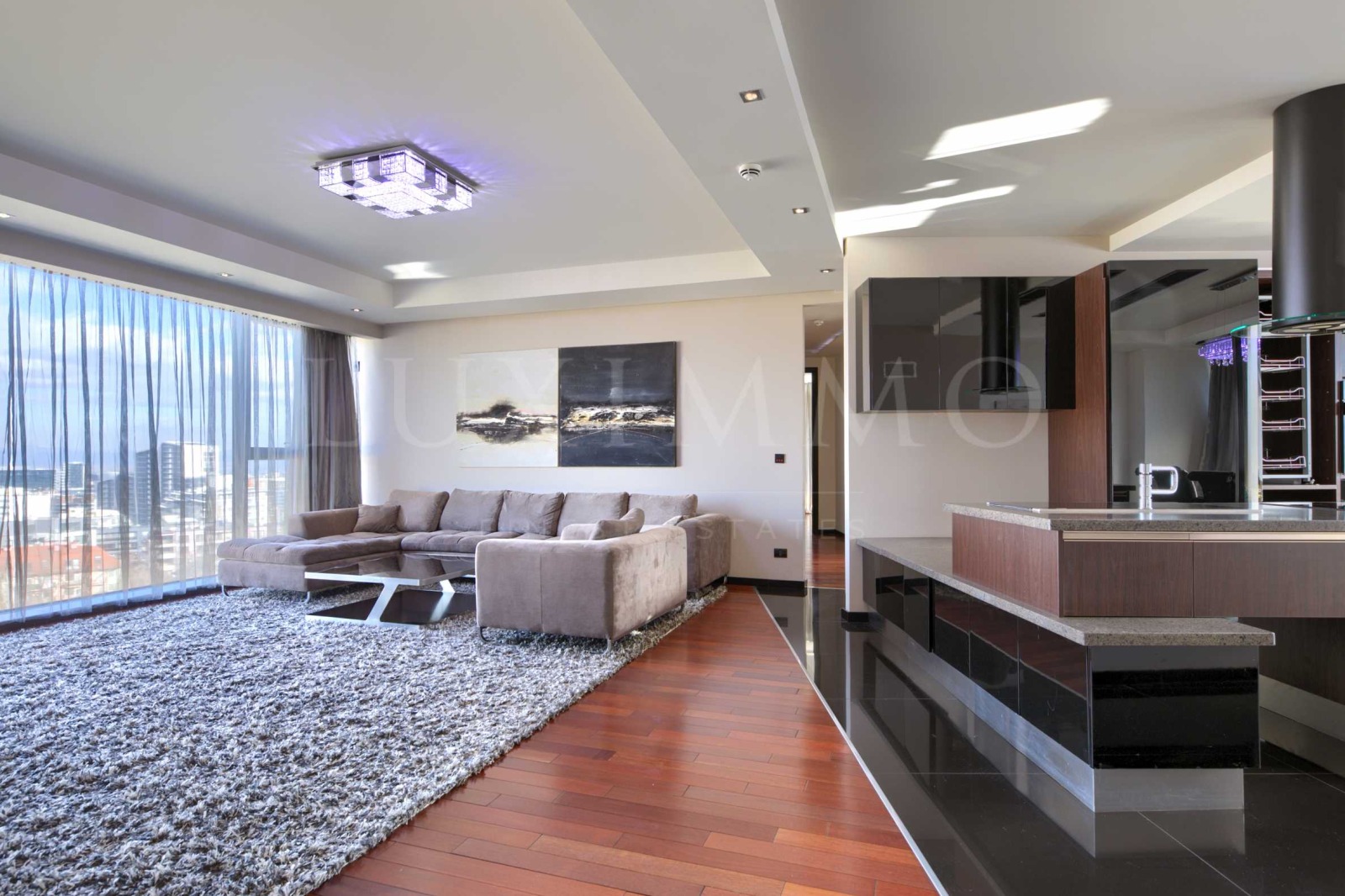 Представяме на Вашето внимание тристаен апартамент в луксозна сграда със стилен лоби бар, впечатляващ набор от уелнес съоръжения, закрит плувен басейн и фитнес център. Жилището се радва на просторни помещения и панорамни гледки към планината Витоша и града.