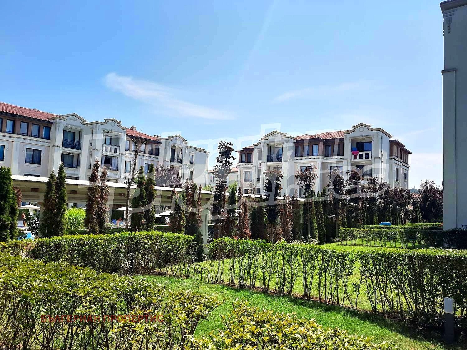 Отличен двустаен апартамент в комплекс Грийн Лайф Ризорт/Green Life Resort с голяма зелена територия, множество басейни, разнообразие от ресторанти, барове, магазини, спортни площадки, детски кътове и други услуги. Разположен е на първа линия от морето, само на 30 км от летище Бургас. Към комплекса има частен плаж с фин пясък, шезлонги и чадъри. Годишна такса поддръжка - 700 евро.