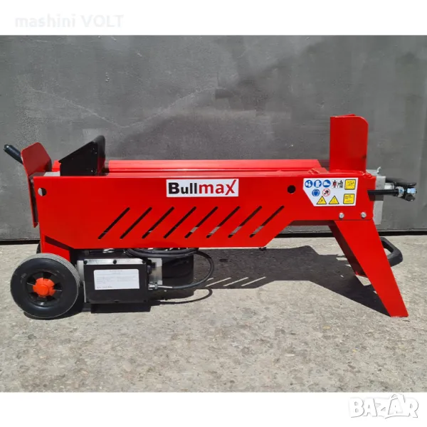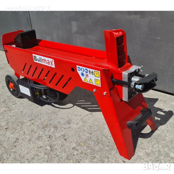 Мощна хоризонтална електрическа хидравлична машина за цепене на дърва BULLMAX. Лесно се транспортира и мести, благодарение на монтираните колела. Система за управление с една ръка. Енергоспестяваща- моторът работи, само когато се цепи дървото. Това спестява енергия и двигателя почива, докато нагласяте следващото дърво. Цепенето на дърва се превръща в удоволствие и става с лекота.