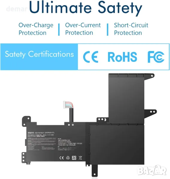 Модел: B31N1637 ;Тип батерия: Li-ion;Напрежение: 11.52V;Капацитет: 42Wh 3653mAh.