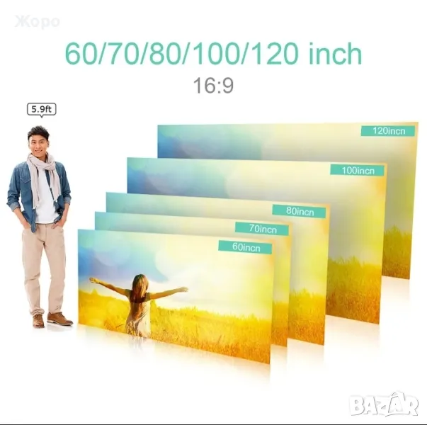 Размер на екрана: 177*100 см/69,68*39,37 инча