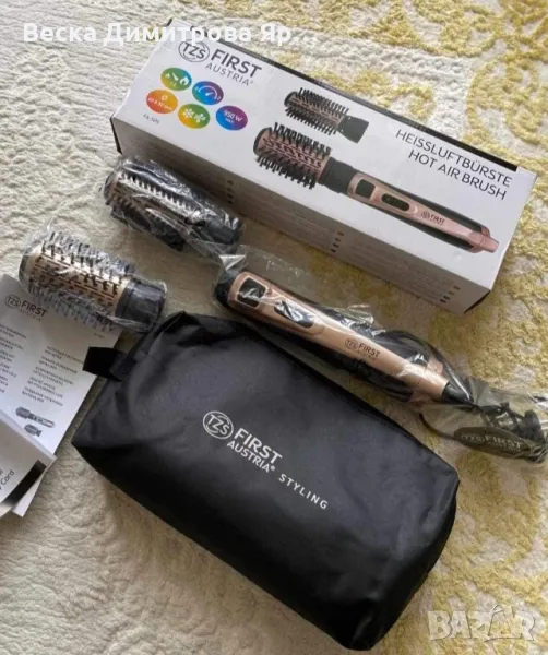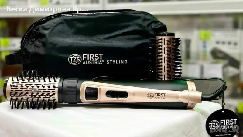 Четката за коса FIRST е надежден партньор за всеки, който търси перфектна прическа с минимален усилия. Със своите иновативни функции и стилен дизайн, тя е идеалният избор за домашно или професионално използване, предлагайки комфорт и удобство във всяка ситуация.36 МЕСЕЦА ГАРАНЦИЯ;Мощност: 950W; Вид на Четката: Мека четка (40 мм и 50 мм); Нива на Отопление: 2; Нива на Скорост: 2; Cool Shot: Да; Висящ Контур: Да; Въртящ Се Кабел: Да; Аксесоари: 2 четки, чанта за съхранение; Цвят: Черен/розов; Ниво на Шум: 75 dB; Напрежение: 220-240V; Размери: 38.5 x 6 x 6 cm; Тегло: 0.8 кг; Дължина на Кабела: 187 см. Цена 59 лв.