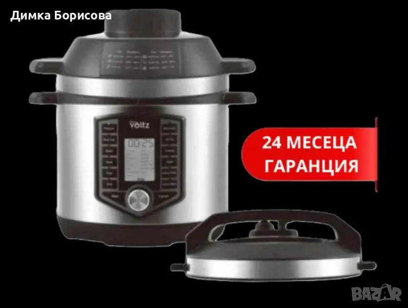 Мощност: 1500 W – осигурява бързо загряване и ефективно готвене при различни режими; Капацитет: 6 литра – достатъчен за големи ястия или приготвяне на храна за цялото семейство; Налягане: 85 kPa – бързо готвене под налягане за оптимални резултати; Брой програми: 12 – включват основни режими на готвене като задушаване, пържене, печене, готвене под налягане и други; Функции: 44 – широк набор от функции за различни кулинарни нужди; Материал на контейнера: Алуминий с инокс покритие – гарантира трайност и лесна поддръжка; Цвят: Инокс – съвременен и стилен външен вид; Тегло: 9 кг.