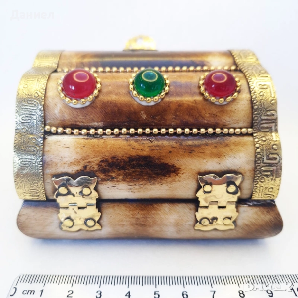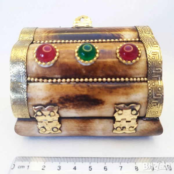 Добавете изтънченост и стил към вашата колекция бижута с този уникален сет от три кутии, изработени от естествен биволски рог и украсени с елегантен бронзов обков. Всяка кутия е ръчно изработена, което гарантира, че получавате истински уникален артикул, който съчетава красота и практичност.