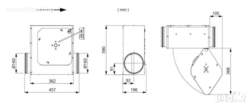 Вентилаторът е предназначен за свързване към въздухопроводна мрежа.