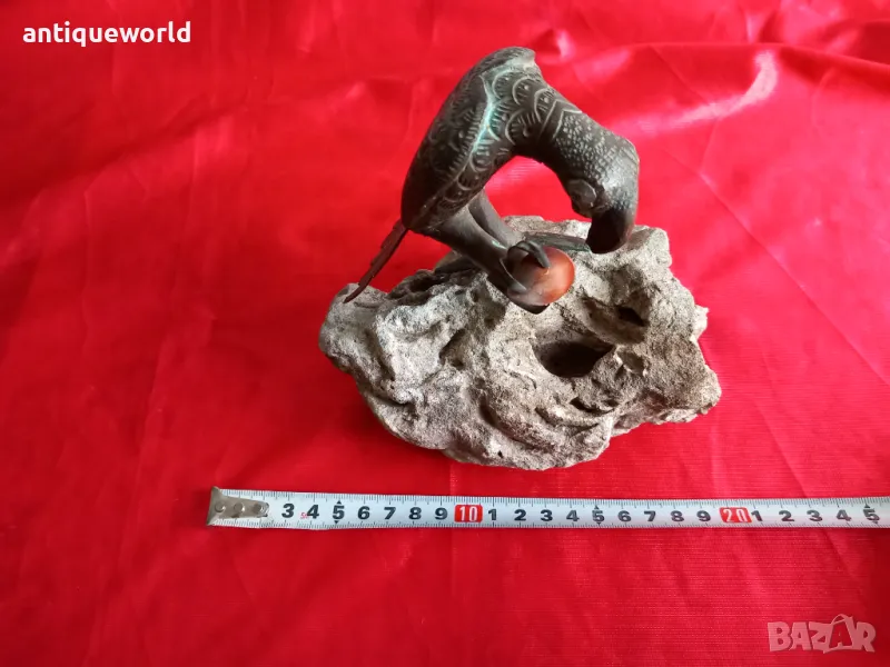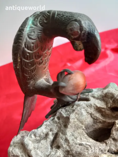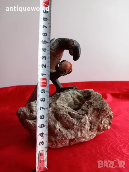 Уникат! Много Красива Стара Масивна Авторска Бронзова Пластика, Статуетка Птица (папагал) кацнала върху парче истинска Скала.Много хубава естествена патина. Неизвестен автор.Единствен екземпляр!