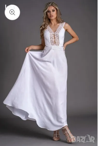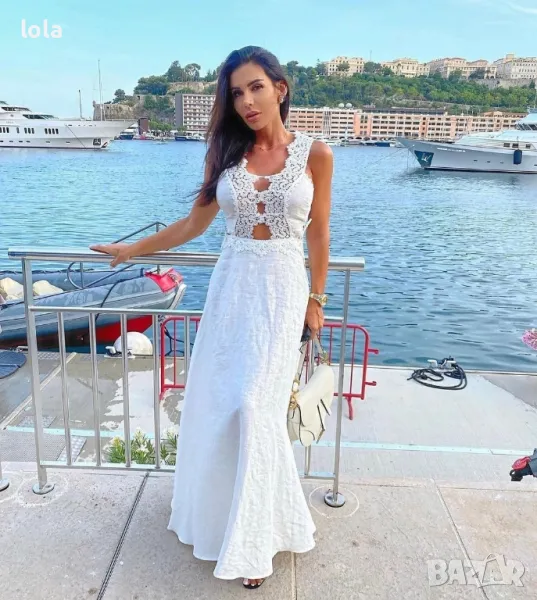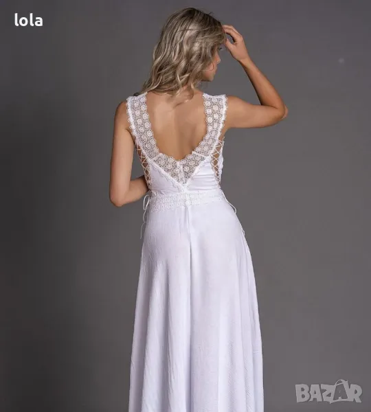 дълга рокля с дантелени елементи.