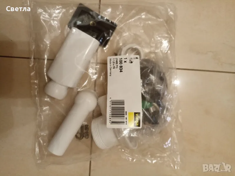 Витло за кухненски сифонГорна част от неръждаема стомана, преливна тръба с регулируема височина, сферична връзка, тапа за витлото с верижка и стойкаВитло ф70мм х21/2 височина -55мм