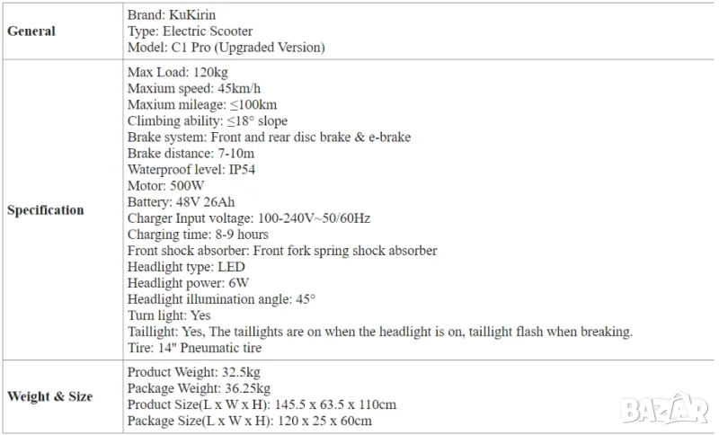 • МАКСИМАЛЕН ПРОБЕГ до 100 км