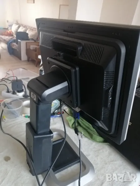 Стойката може да се регулира на височина и мониторът се върти на 180 градуса.