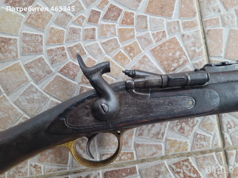 Пехотна пушка Снайдер. В колекционерско състояние. Непочиствана. Затворът отваря и затваря надеждно, като ключалката му работи. Петлето запъва и в двете положение и спуска надеждно. Силна бойна пружина. Много добри канали. няма ръжда по железните части, а само отлична патина. Дървенията е без дървояд.
