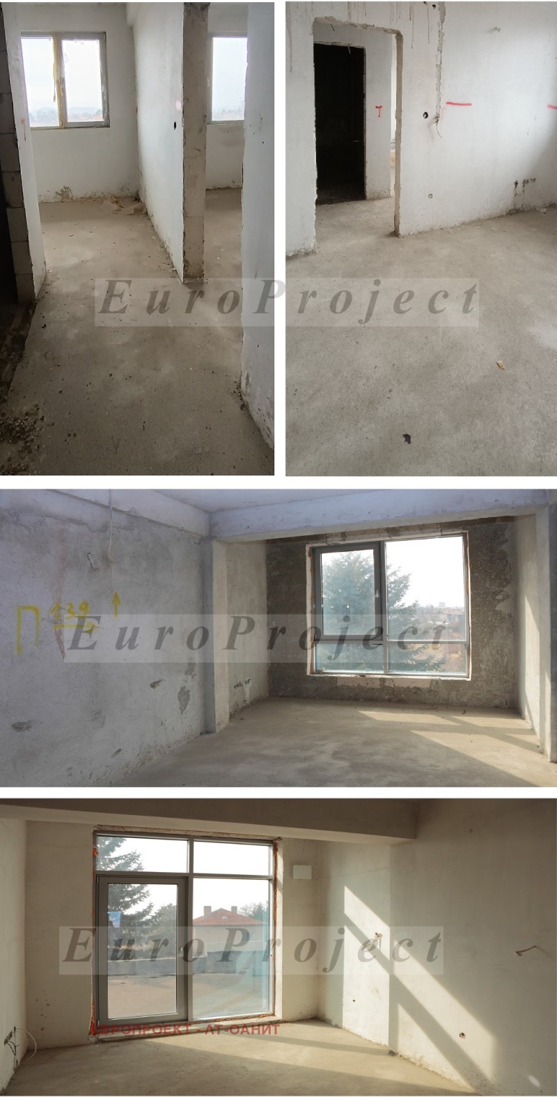 Под - циментова замазка, стени и тавани - шпакловани около 60 -70 %.
