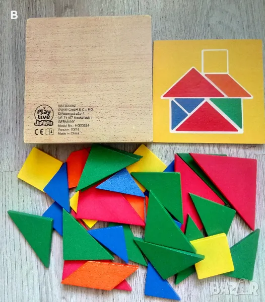 Игра с дървени геометрични фигури Таграм → Обява 47237180