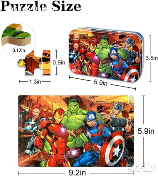 Дисни oтмъстителите пъзел в метална кутия 60 части за възраст 4-8 години → Обява 47237227