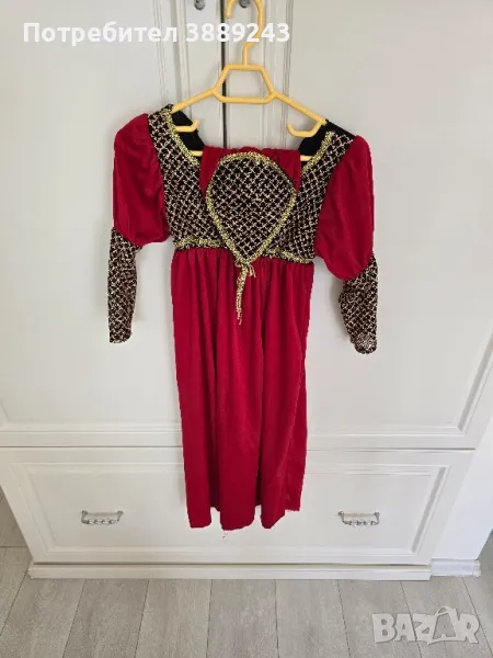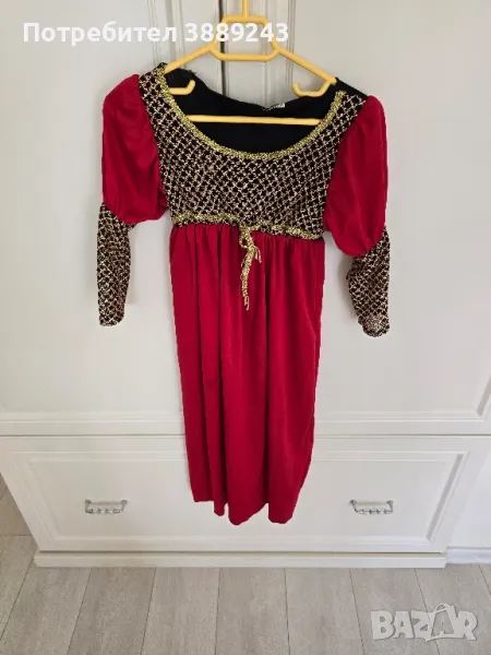 Комплект детски костюми за поводи. Размерите са от 6години до 12 години.Материите са разтегателлни.Костюмите са запазени.Получавате -подарък роклята/червената/ на Жулиета, диадемите-2 бр.,плитка фиба,черното наметало,шапката,чантичката с ключодържателя.