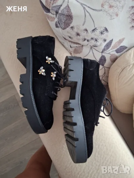 Обувки от изкуствен велур с украшения.В отлично състояние.Стелка24 см.