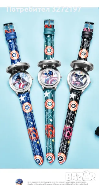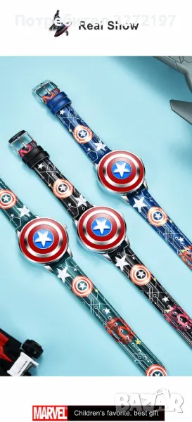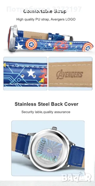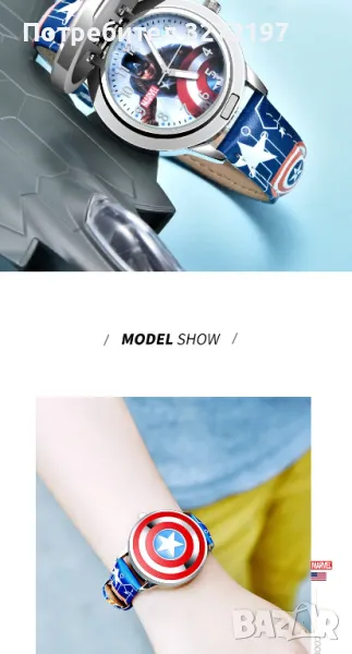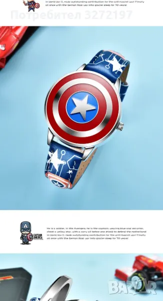 Oригинален кварцов часовник Captain America -Marvel Avengers,с Японски механизъм,водоустойчив