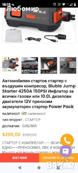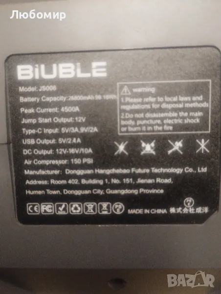 Автомобилен стартер с въздушен компресор, BIUBLE