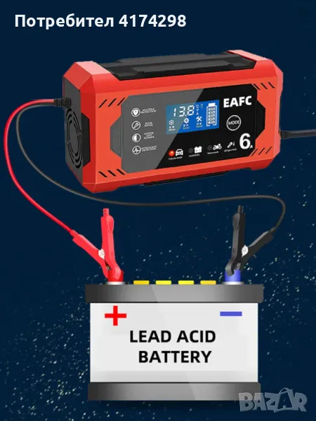 - Това зарядно устройство е за батерия с капацитет между 4AH до 100AH