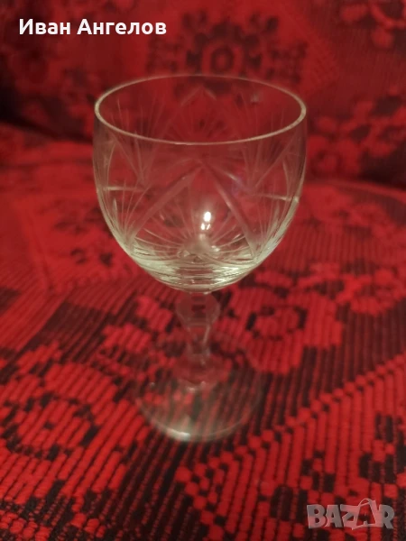 Продавам комплект от 12 броя нови гравирани чаши със столче за ракия от калиево стъкло, 50 мл. Размери 12/6 см.