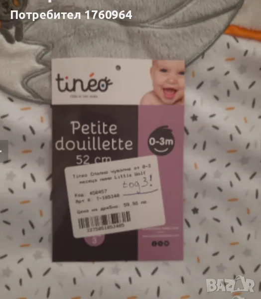Чисто ново зимно чувалче 3 tog с етикет и размер от 0 до 3 месеца на цена от 20лв.Бяло много малко използвано пролетно-есенно чувалче 1 tog 0-6 месеца на цена от 10лв.