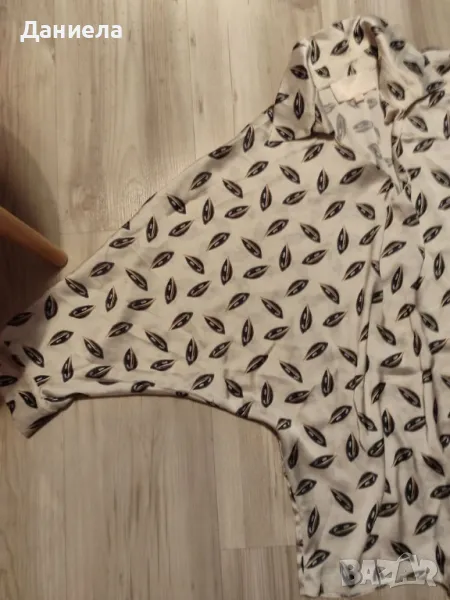 Блузата е нова, свободен ръкав, отговаря на размер L, цвета е екрю с фигури .