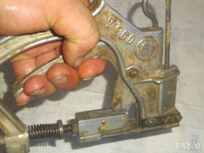 Ръчен професионален такер старо качество висок клас за V образни пирони различни размери. Такера са с употреба за хартия, табак, картон, при тапициране и в дърводелството и при направата на пчелни
